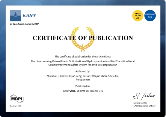 (通讯员:李志轩)4月16日,由随州职业技术学院土木与建筑工程学院牵头,联合中南市政工程设计研究院、国家油气装备重点实验室及湖南建工集团共同攻关的市政工程领域科研论文《基于机器学习的抗生素降解体系动力学优化》,成功发表于国际权威SCI期刊《Water》(JCR Q2区,影响因子3.0,ISSN:2073-4441)。