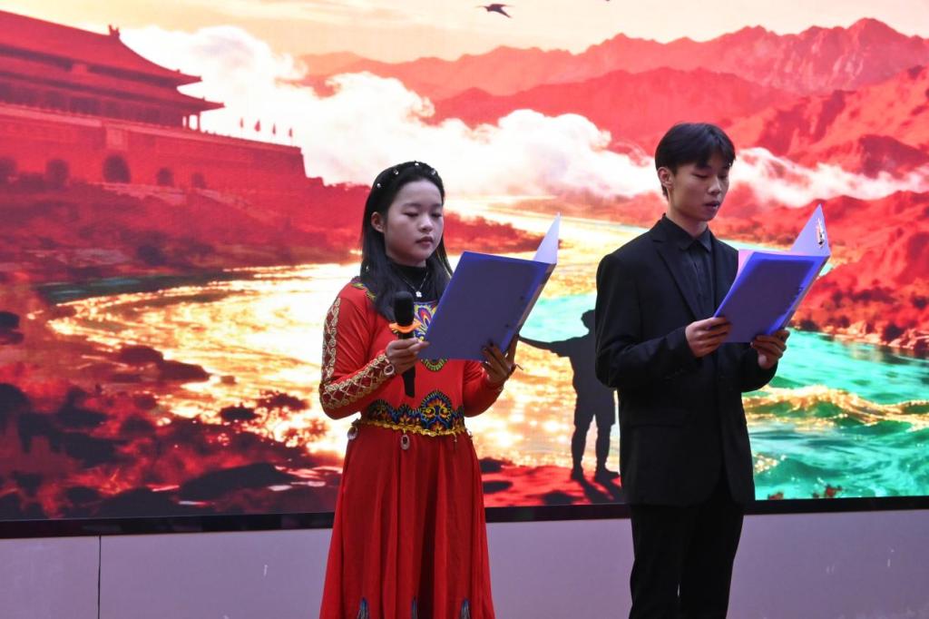 文艺表演环节精彩纷呈。藏族舞、维吾尔族舞、土家族舞等节目,生动展现了不同民族的独特风情与艺术魅力;诗歌朗诵《民族团结》、《青春中国志》及手势舞《国家》,表达了师生们深厚的家国情怀;辅导员参与的串烧舞蹈,则体现了师生同乐的融洽关系。最后,全场大合唱《我和我的祖国》将活动推向高潮,激昂的歌声抒发了对祖国统一和民族团结的坚定信念。