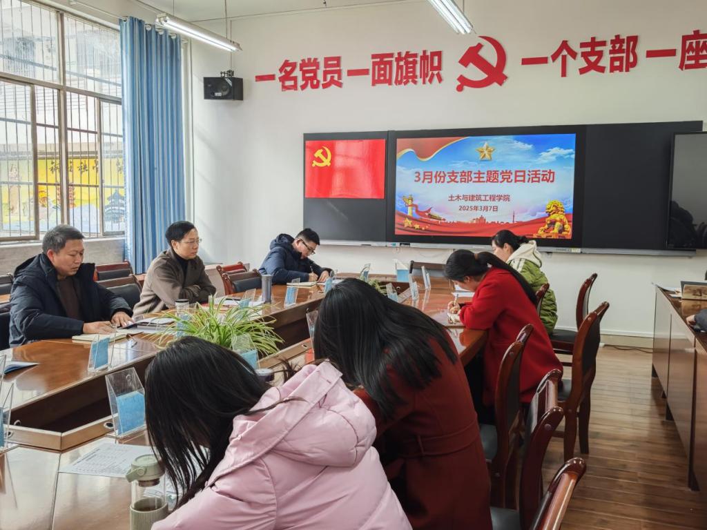 为深入贯彻党的方针政策,加强党员队伍的思想建设和能力提升,积极响应上级党组织的号召,3月7日下午,土木与建筑工程学院组织召开2025年3月份支部主题党日活动。活动中,党员们集中深入学习习近平总书记关于宗教工作的重要论述,学习《中国纪检监察报:如何认定组织、参加封建迷信活动行为》;学习习近平在民营企业座谈会上的讲话精神;学习习近平在中共中央政治局第十九次集体学习时的讲话精神;学习保密教育相关内容;学习习近平在二十届中央纪委四次全会上重要讲话精神;学习省纪委领导有关讲话精神;进行3月份党风廉政建设:省纪委监委通报5起违规打牌和赌博典型问题和湖北省纪委监委网站关于刹住党员干部“牌桌上的玩风”报告;学习市纪委五届五次全会精神;学习《习近平著作选读(第二卷)》内容:坚持底线思维,着力防范化解重大风险;不断提高政治判断力、政治领悟力、政治执行力和中华民族共同体意识是民族团结之本;学习教育部《高等职业学校办学能力评价实施方案(2025-2030年)》以及学习2025年学校工作报告等重要内容。